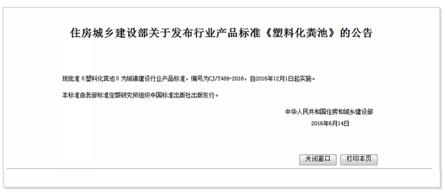 國家住房城鄉(xiāng)建設(shè)部發(fā)布行業(yè)產(chǎn)品標(biāo)準(zhǔn)《塑料化糞池》,瑞堂科技參與起草