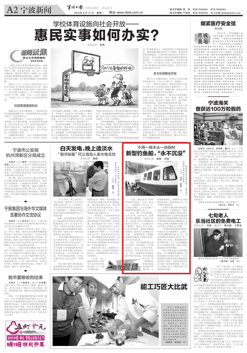 【2012-9-17】新型釣魚(yú)船 永不沉沒(méi)