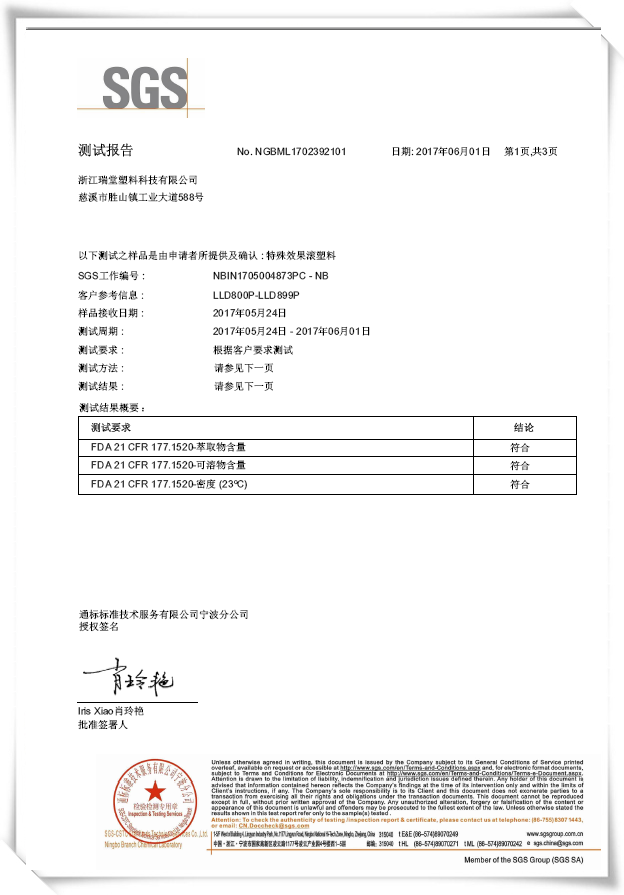 瑞堂科技LLD800P-LLD899P系列特殊效果滾塑料通過(guò)FDA食品級(jí)認(rèn)證