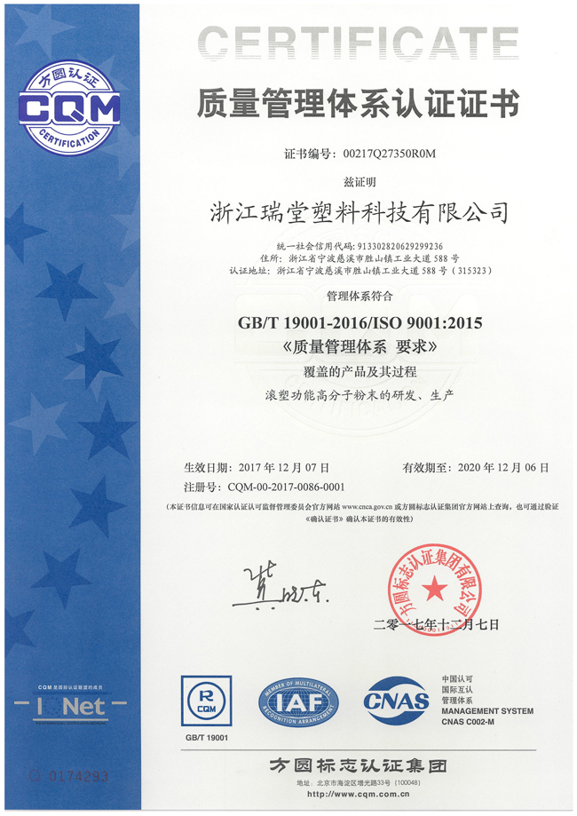 瑞堂科技獲得GB/T 19001-2016/ISO9001:2015質(zhì)量管理體系認證證書