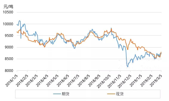 圖1 2018-2019年LLDPE期現(xiàn)對(duì)比圖