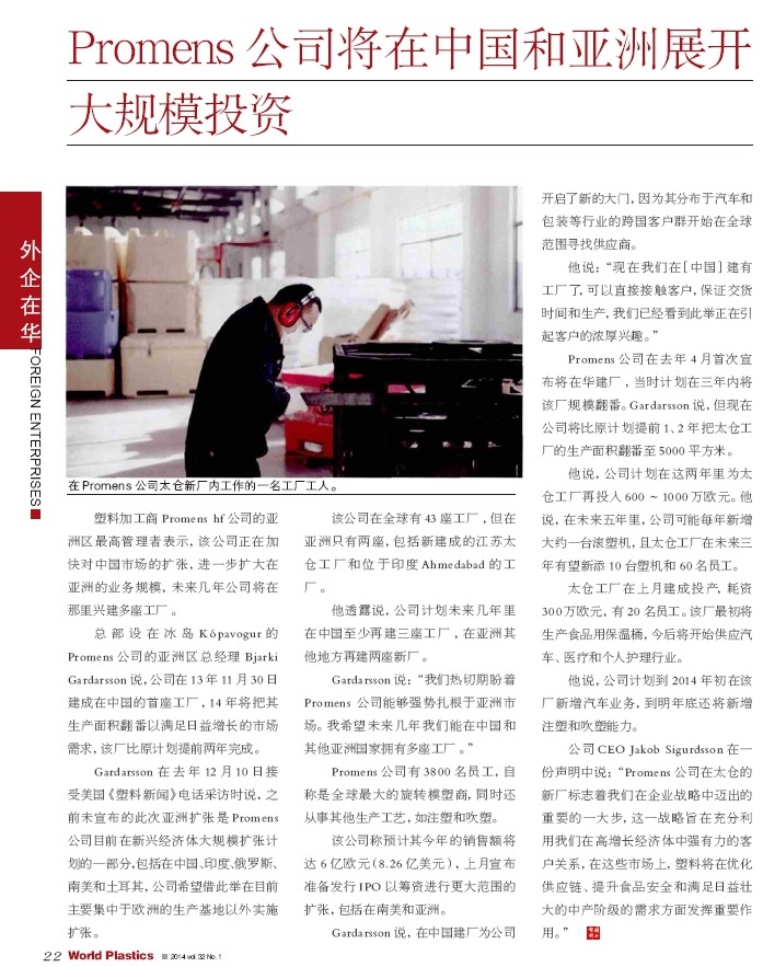 【2014-1】Promens公司將在中國和亞洲展開大規(guī)模投資