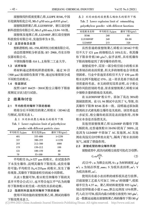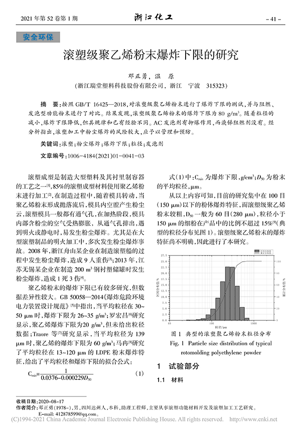 滾塑級聚乙烯粉末爆炸下限的研究