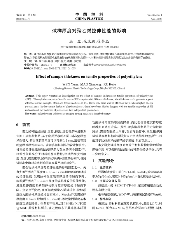 試樣厚度對聚乙烯拉伸性能的影響