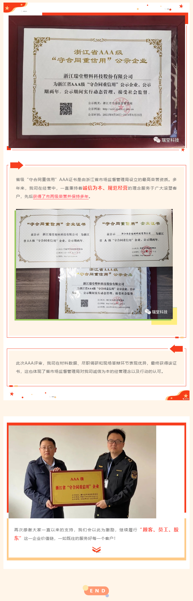 公司動態(tài) | 祝賀我司被評為浙江省AAA級"守合同重信用"企業(yè)