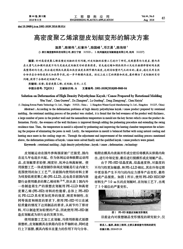 高密度聚乙烯滾塑皮劃艇變形的解決方案